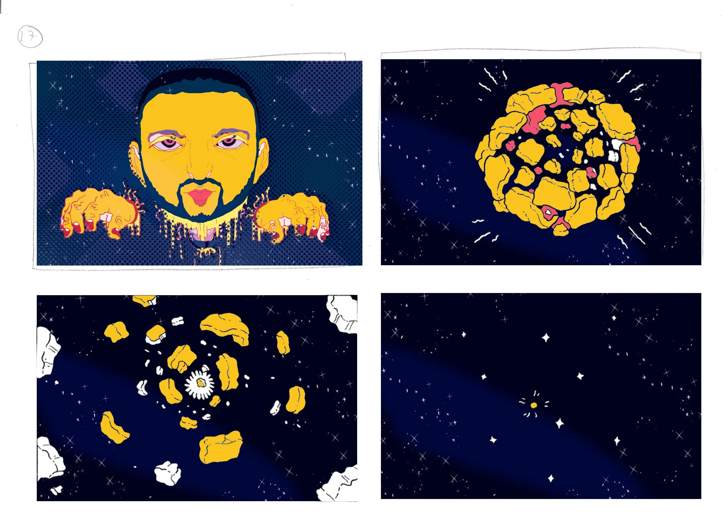 Dr P - Galaxies & Stars - Music Video & Animal Vegetable Mineral Album cover Story Board & Drawings for animation Drawings for animation Film Stills